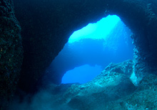 文字通り巨大アーチが2つ並んだダイナミックなポイント。通称「ウルトラマンホヤ」と呼ばれる希少なホヤも見られる。
